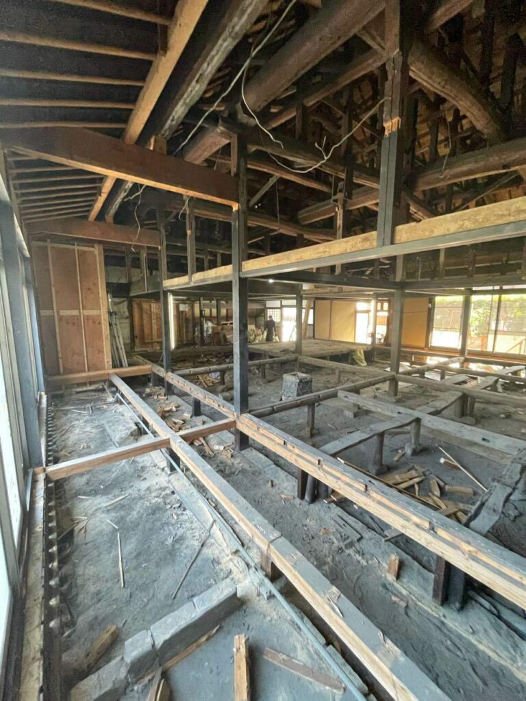既存梁・木組みを残しつつ、耐震補強&床下からスケルトン改修