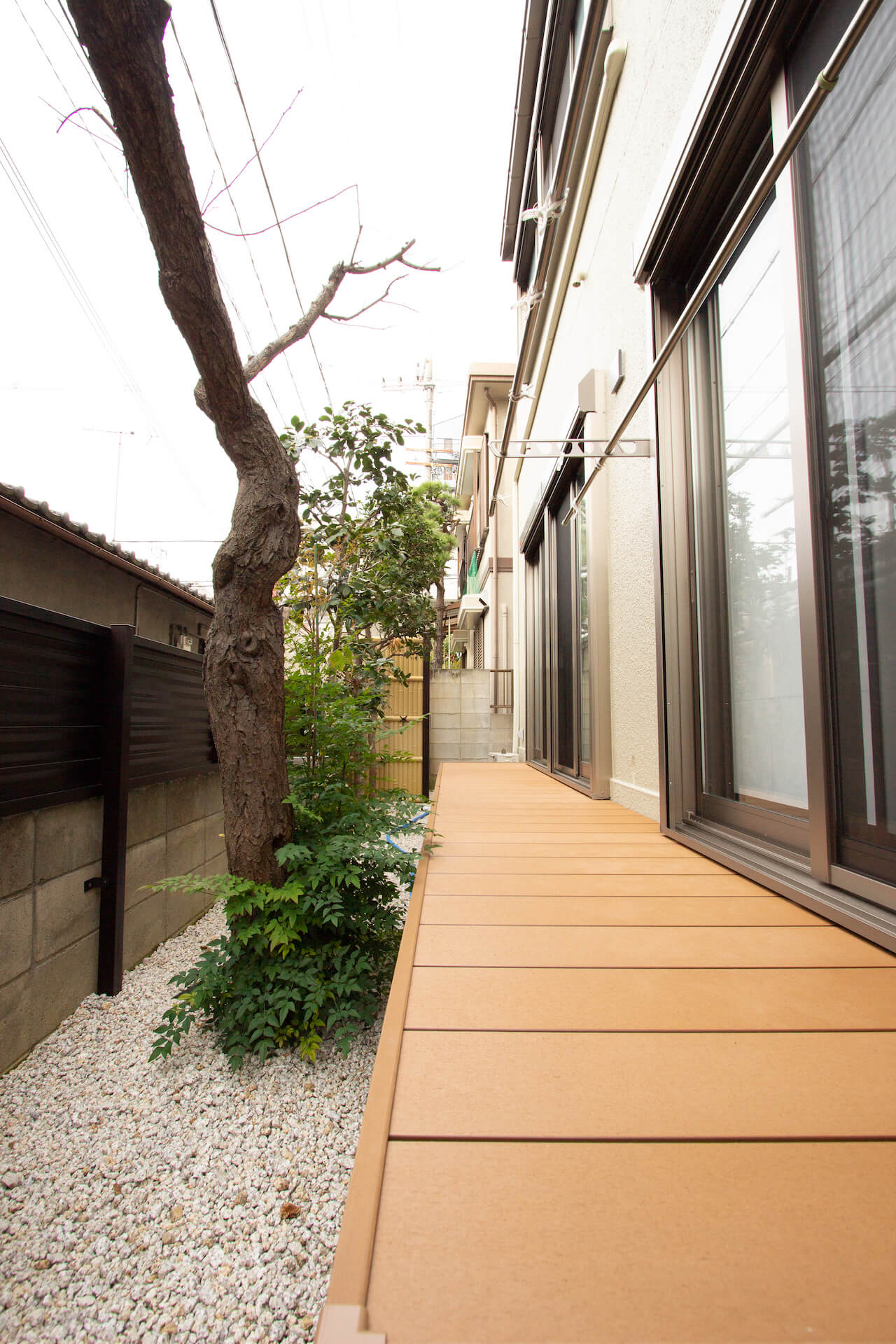 特に注目して欲しいのが庭の新調。伐採して木の移設・砂利を敷き詰めてウッドデッキを設置。
