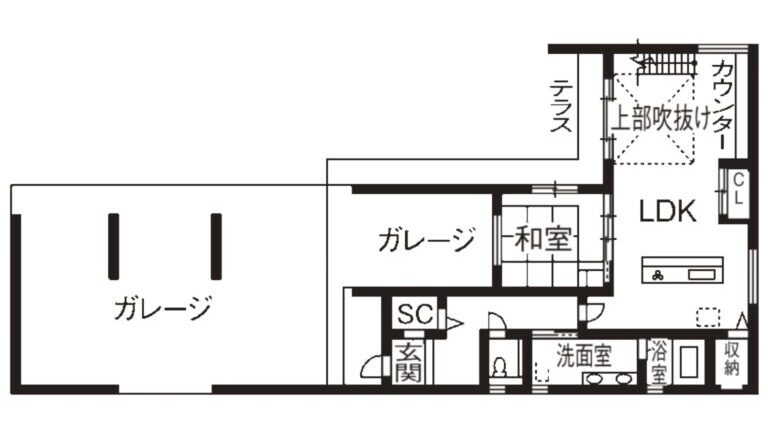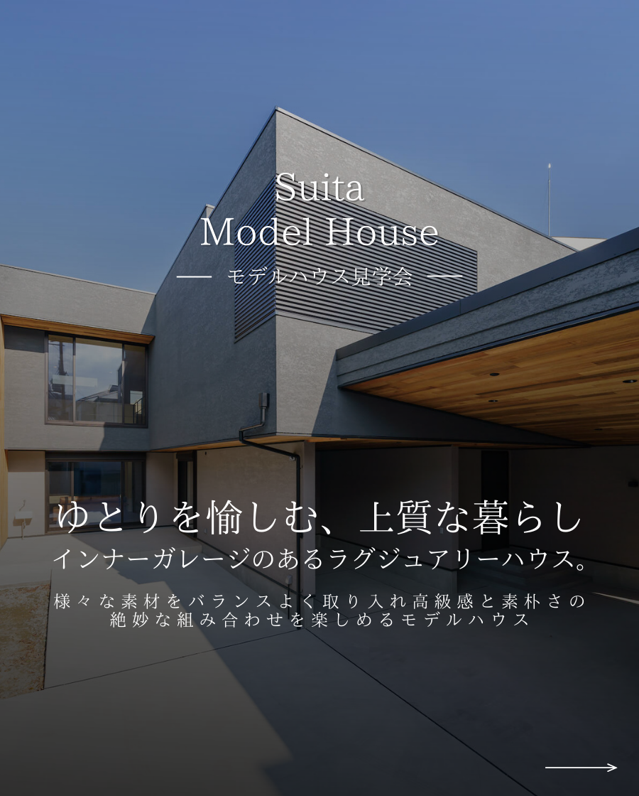 3台分もの駐車スペースの他、大型車も停められるインナーガレージと一体型となったハイクオリティなモデルハウスです。上野工務店の「第一種換気システム」を採用した高気密・高断熱住宅であり、高気密C値0.2・高断熱UA値0.58(自社測定値)・断熱等級6。外に排気する空気の熱を活用し、室内温度に近づけて給気する仕組みのため、家の中の温度差はほとんどなく、どの部屋にいても一年を通して快適です。上質感あふれる一枚板のハイドアやチーク材の床、珪藻土クロスの壁、階段のアイアン製の手すりなど、様々な素材をバランスよく取り入れ高級感と素朴さの絶妙な組み合わせを楽しめるのも魅力です。