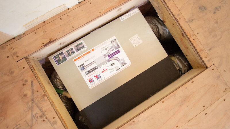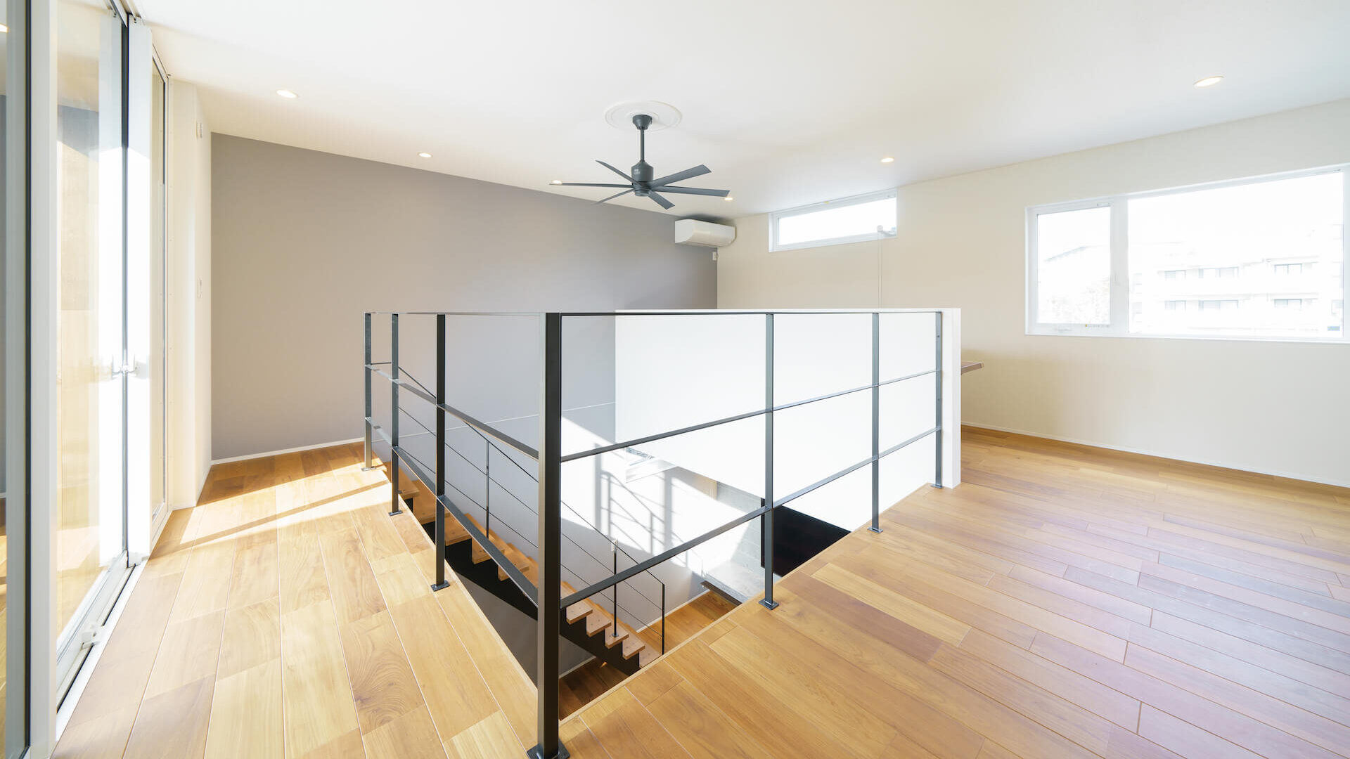 吹き抜けが広がる空間でも快適に過ごせる、「第一種換気システム(吸排気型)」を採用。外へ排気する空気の熱を活用して室温に近い温度を給気するため、1階と2階の温度差はほとんどなく、一年を通して過ごしやすい空間です。上野工務店が誇る「高気密・高断熱住宅」をぜひ体感して下さい。