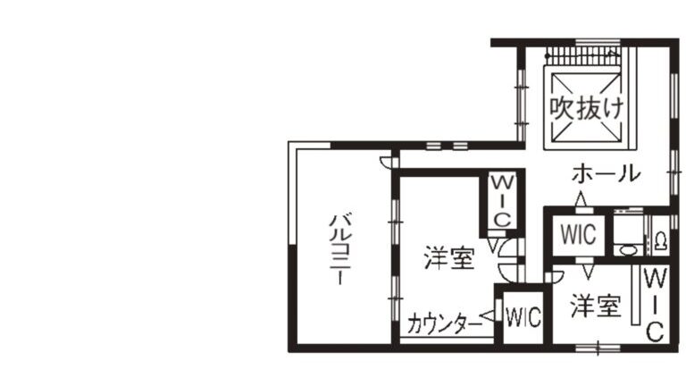 バルコニーに面した2階洋室は、開放感とプライバシーを両立。壁側には勉強コーナーになるカウンターが一面に