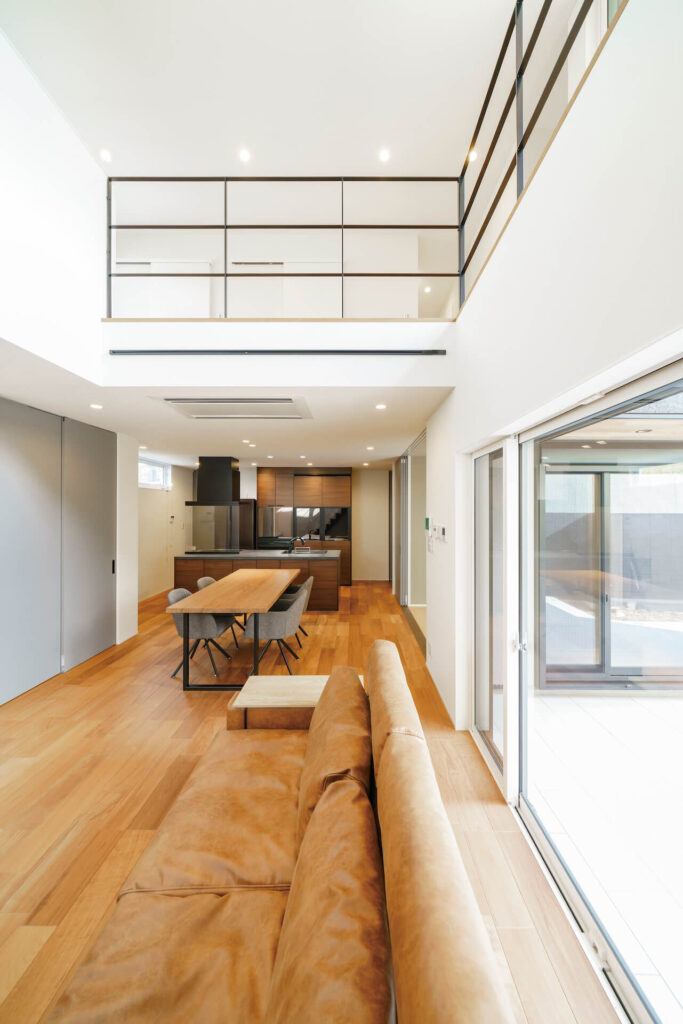 LDKの真上は大きな窓やダイナミックな吹き抜けがあり、開放感と心地よさに包まれて過ごせる